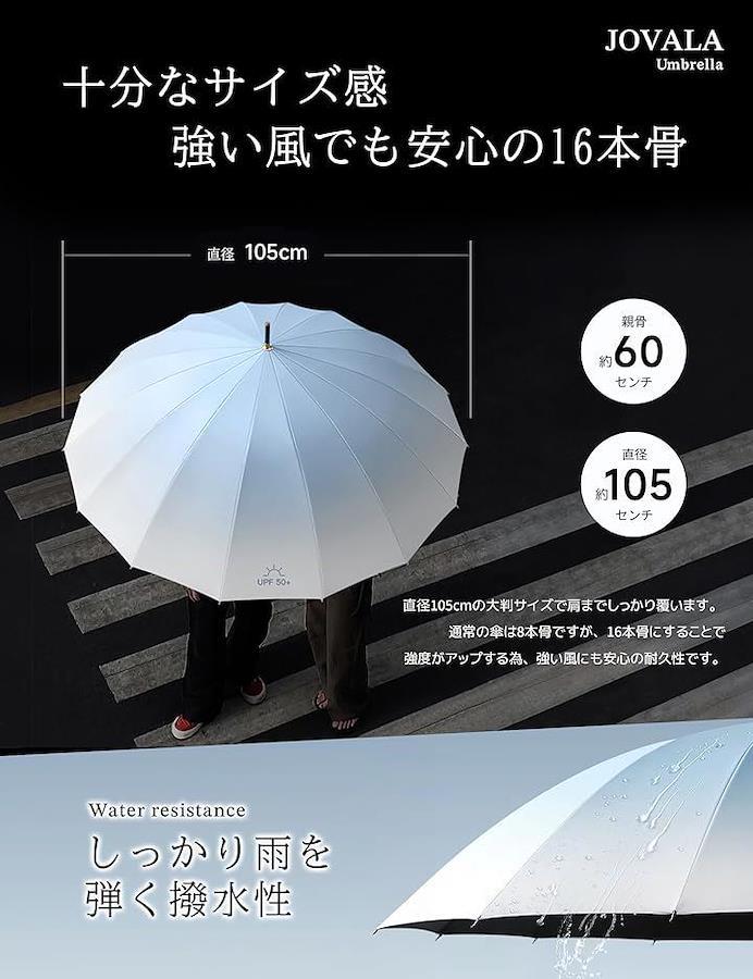 デザインのグラデーションが目を引くデザインで、雨の日もウキウキ。16本骨が作り出す曲線が美しい円型、従来の8本骨の2倍数量で耐強風と耐久性の両面を実現できます