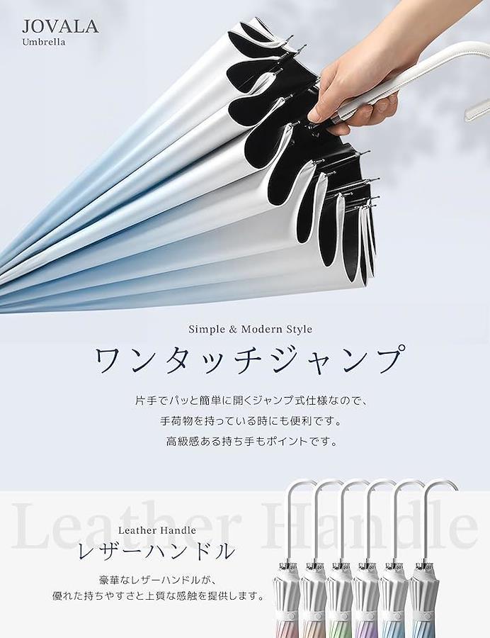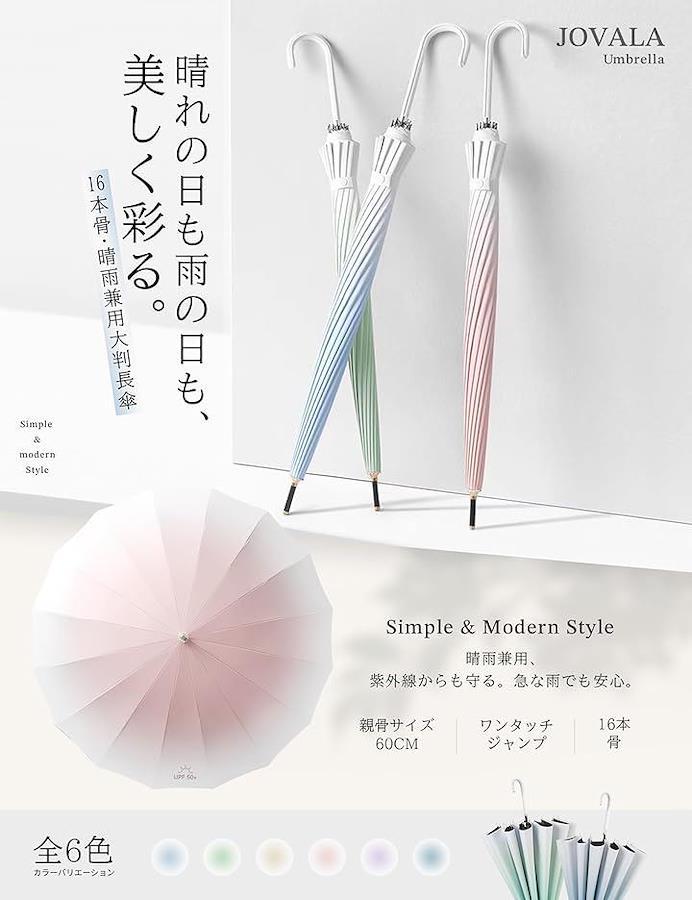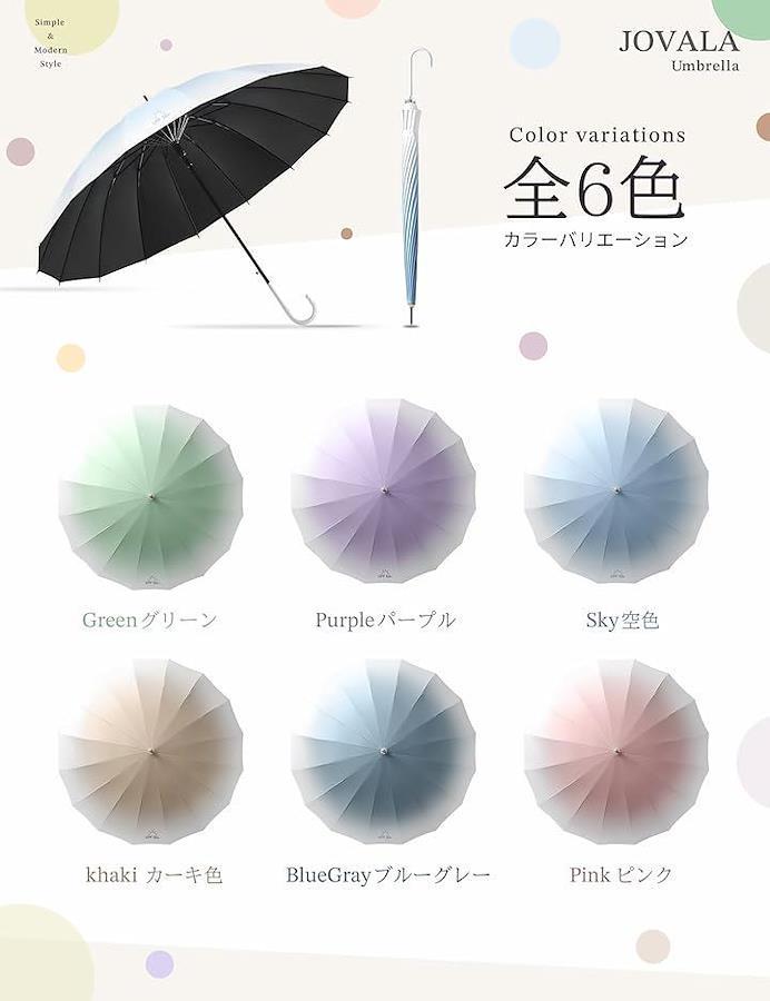 デザインのグラデーションが目を引くデザインで、雨の日もウキウキ。16本骨が作り出す曲線が美しい円型、従来の8本骨の2倍数量で耐強風と耐久性の両面を実現できます