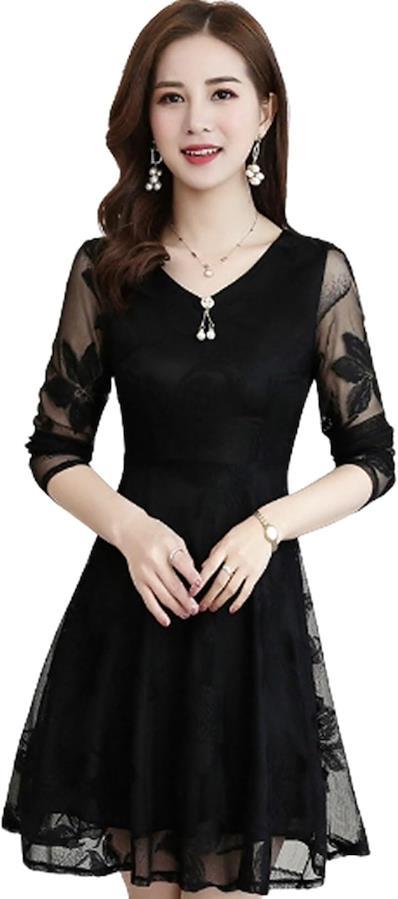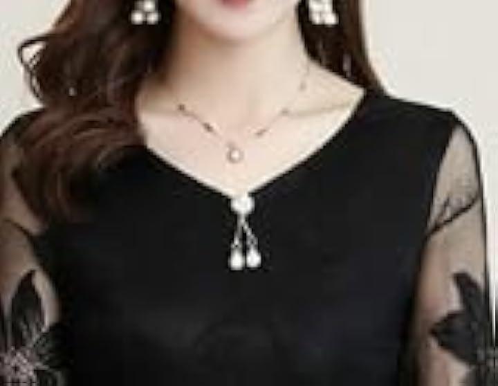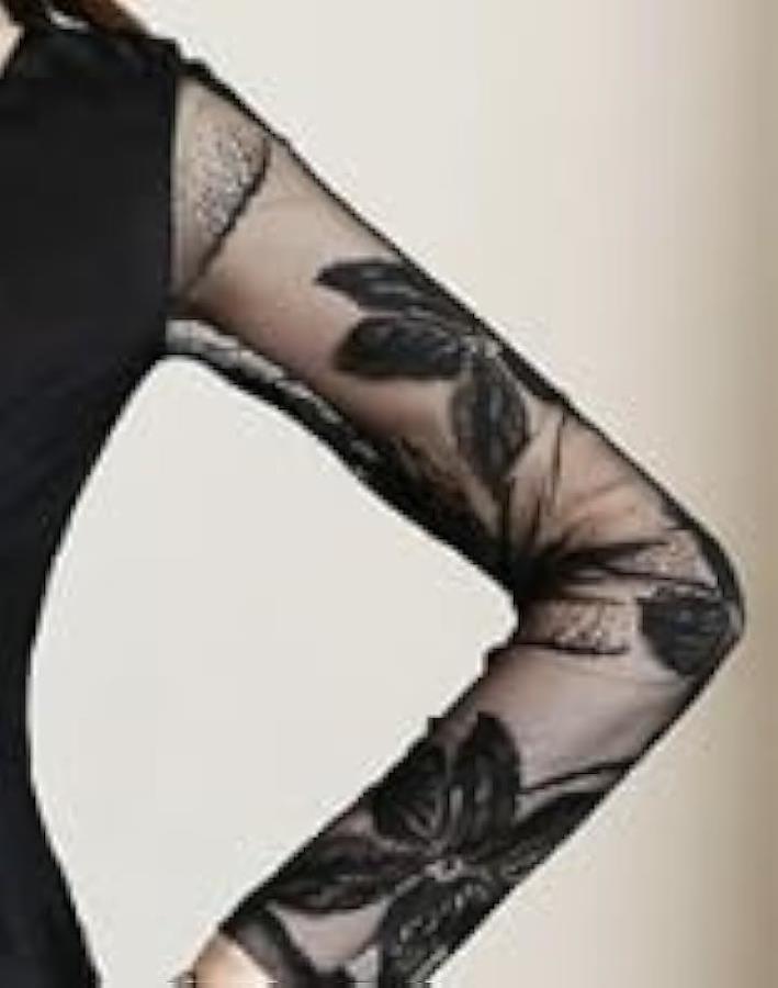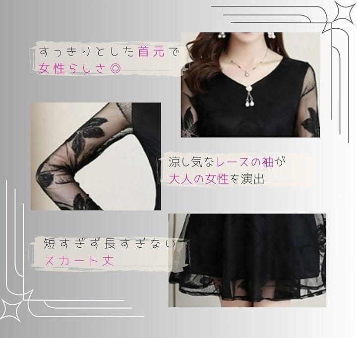 花柄の長袖シースルーとVネックが上品な印象を与え、大人の女性を演出します