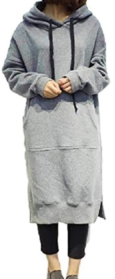 さっと1枚でオシャレに着こなしできる無地、黒、グレー、グリーン、スウェットロング丈ワンピースは年中続く不動の人気*