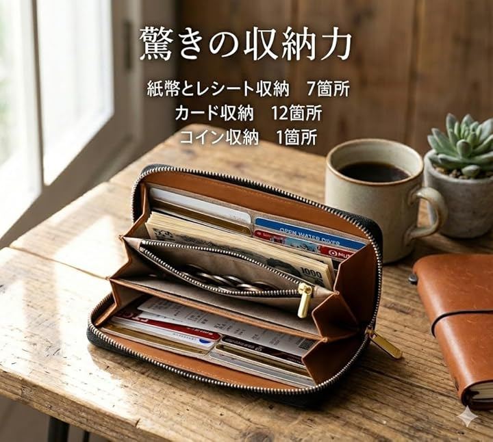 収納力と機能美を極めた、牛革ラウンドファスナー長財布」 毎日手に触れるものだからこそ、素材と使い勝手にこだわりたい。