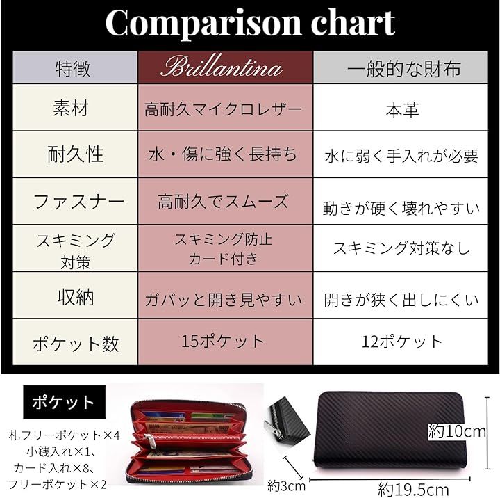 「合計15ポケット。詳細に使い分ける大容量設計」 カード8枚に加え、マチ付きの札入れ・フリーポケットx4、整理に便利な薄型ポケットx2、小銭入れx1の全15収納を搭載。