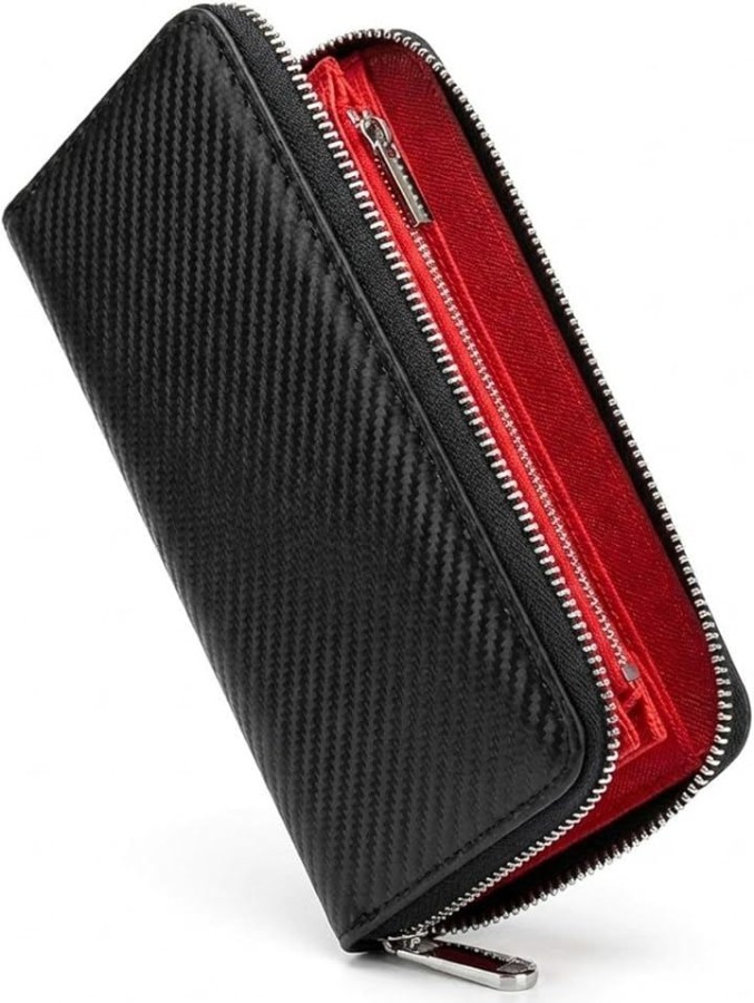 「常識を覆す、極上カーボン・マイクロレザー」 外装には幾何学模様が美しいカーボンブラックの「高密度マイクロファイバー」を採用。