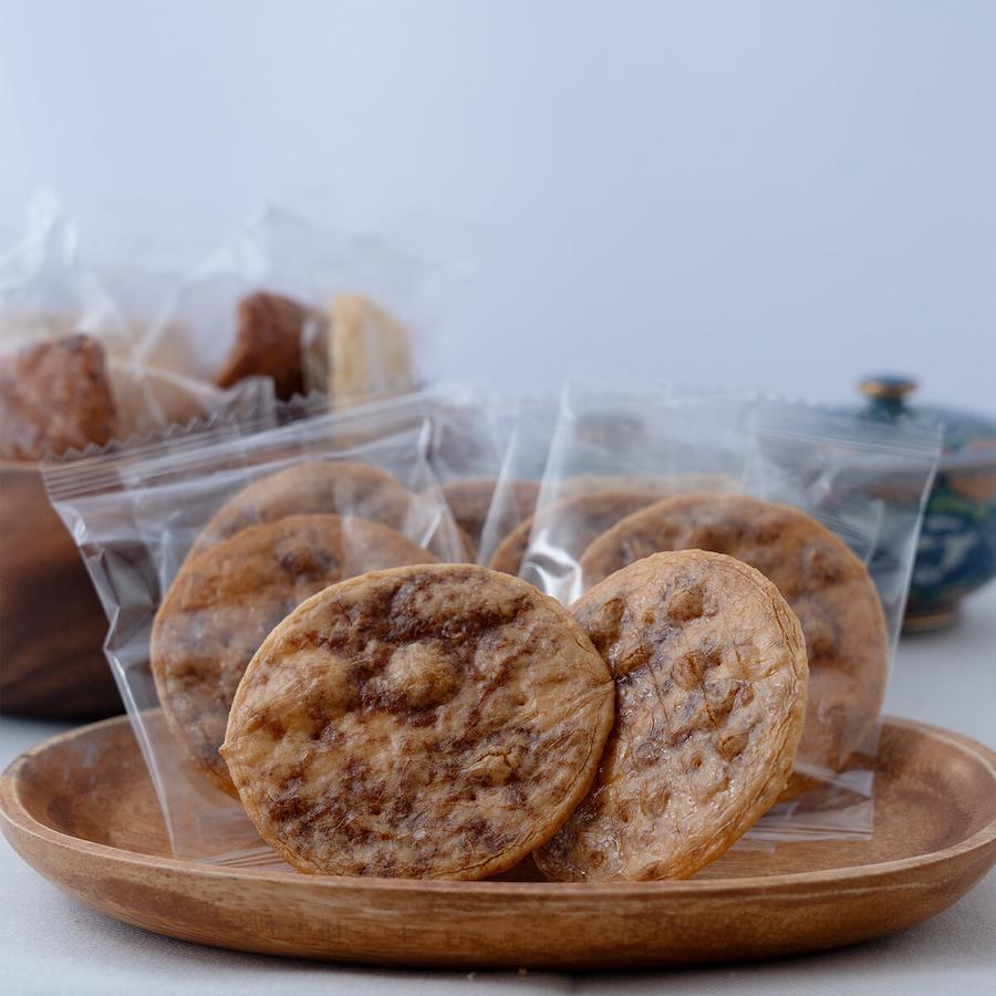 生地に特製しょうゆダレをしみ込みせ、タレがしみ込んだしっとりもっちり感としみ込みが薄いさくっとした食感のぬれせんべいです。