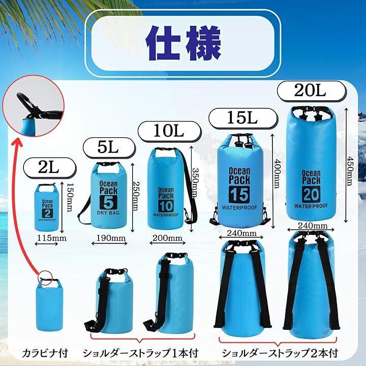 「サイズ・カラー」サイズは2L/5L/10L/15L/20Lとコンパクトから大容量まで幅広く取り揃えていますので、荷物の量や使用シーンに合わせてお選びください。