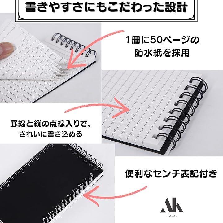 「使いやすい構成」1冊に50ページの防水紙を採用。