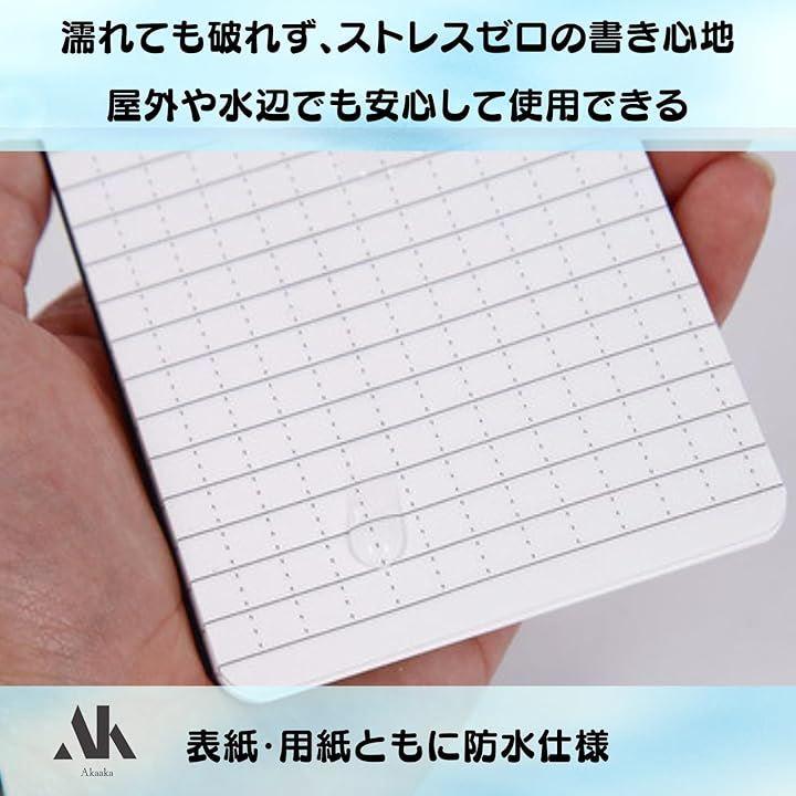 「防水設計」表紙と用紙ともに防水仕様で、水に濡れても紙がふやけず、滑らかに筆記できます。