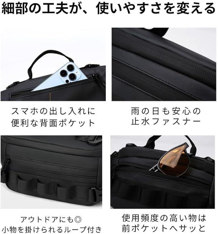 「防水性能でアウトドアの強い味方」本製品は、耐久性に優れた1000Dナイロン素材を採用し、さらに止水ファスナーと撥水加工を施したことで、突然の雨や水しぶきにも対応可能。