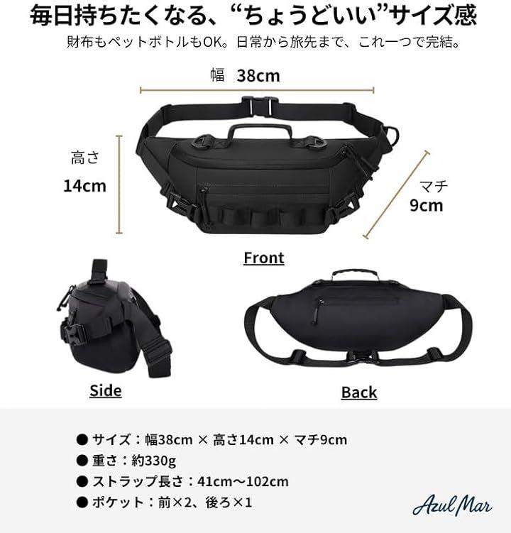 「3WAY仕様で自由な使い方」ウエストポーチ・ボディバッグ・肩掛けバッグとして使用可能。