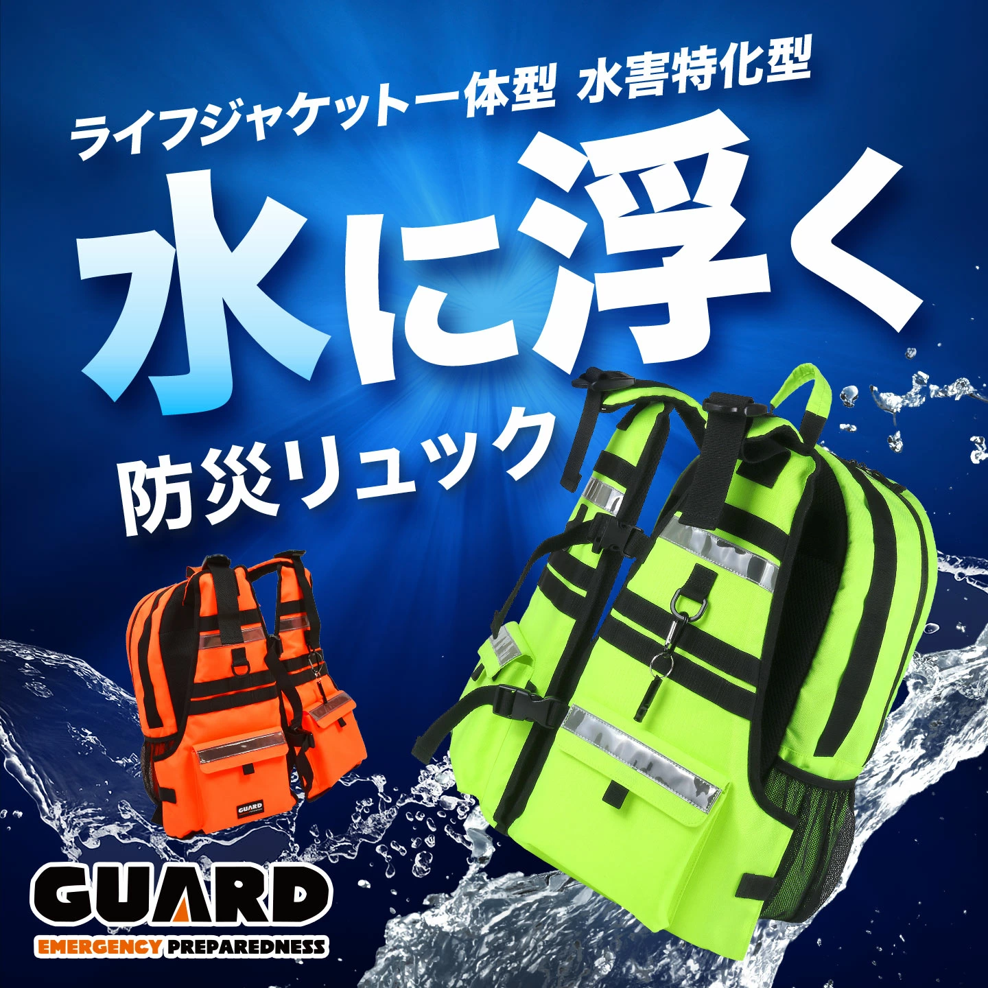 水に浮く防災リュックと防災グッズを一緒にお届け/