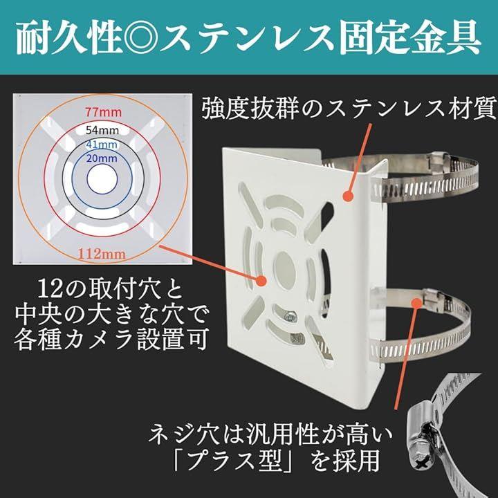 「セット内容」カメラブラケット(取付金具)x 2、ステンレスバンド(サイズ直径:200mm)x4本 「サイズ」約10.5cm x 10.5cm x 4.5cm