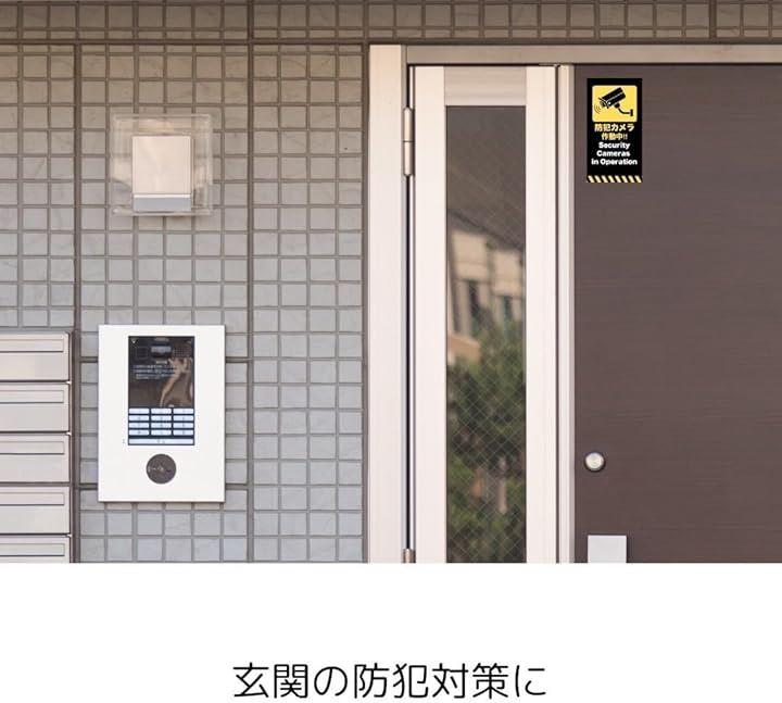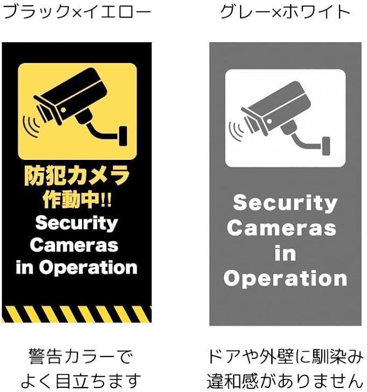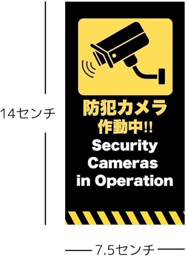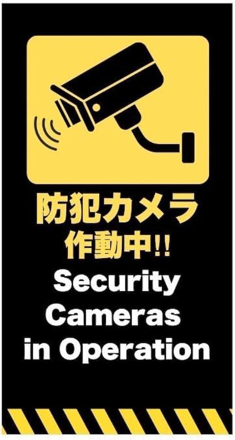 「防犯対策に」おしゃれ防犯カメラ作動中シール・75x140mm/白塩ビ/強粘着のり