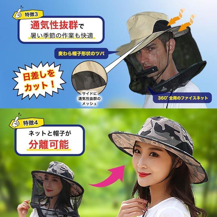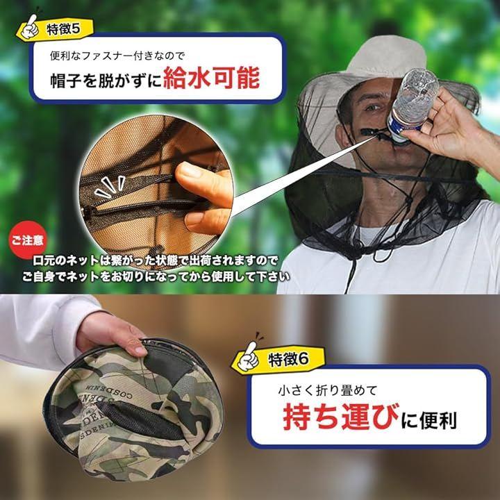 「ネットを取り外し可能」ガーデニングや農作業といった虫に悩まされる屋外の作業に最適です。