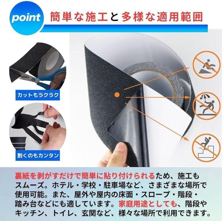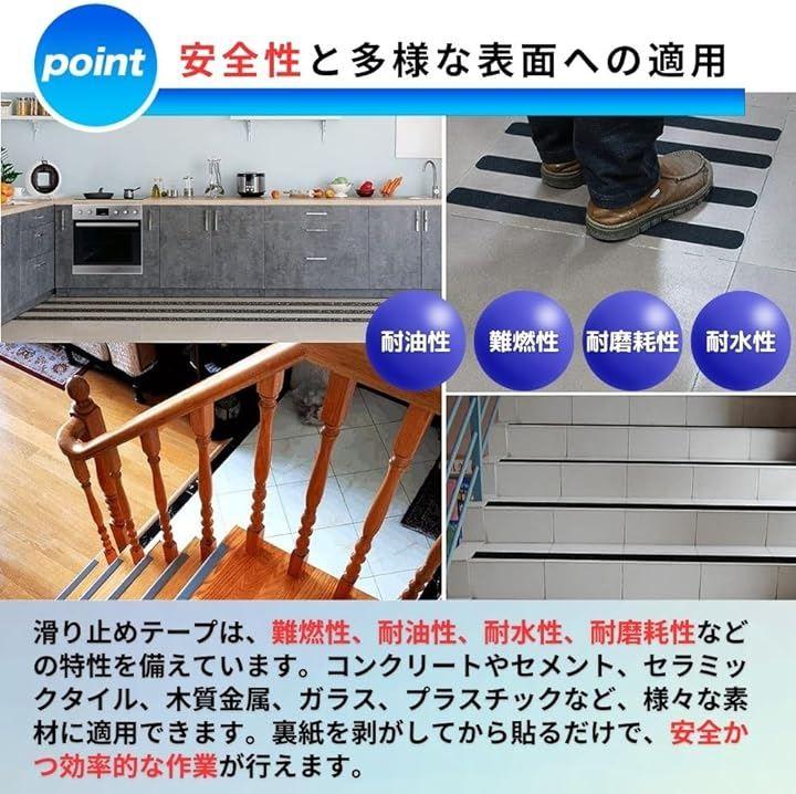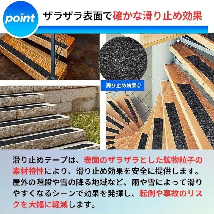 こちらの滑り止めテープは、表面のザラザラとした鉱物粒子の素材特性により、滑り止め効果を安全に提供します。