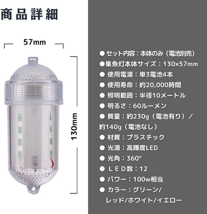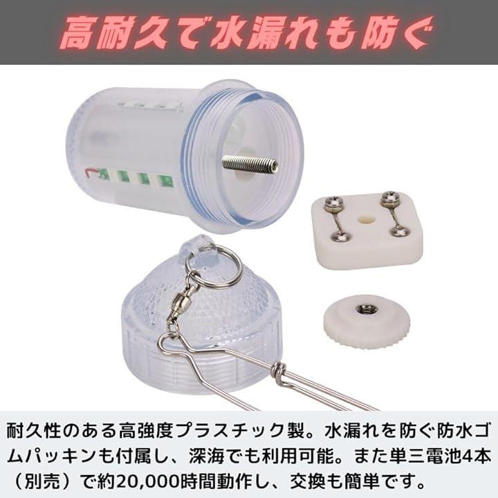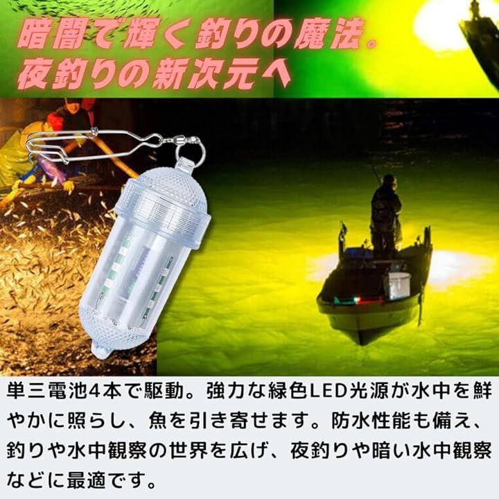 単三電池4本で駆動し、その強力な緑色LED光源は水中生態系を鮮やかに照らし、魚を引き寄せます。