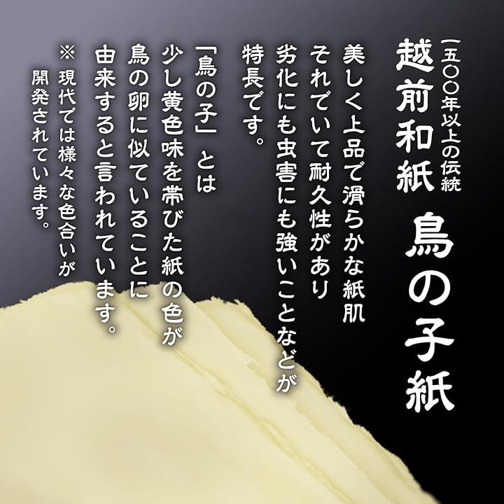 「鳥の子」とは少し黄色味をおびた紙色が鳥の卵の色に似ている事に由来すると言われています。