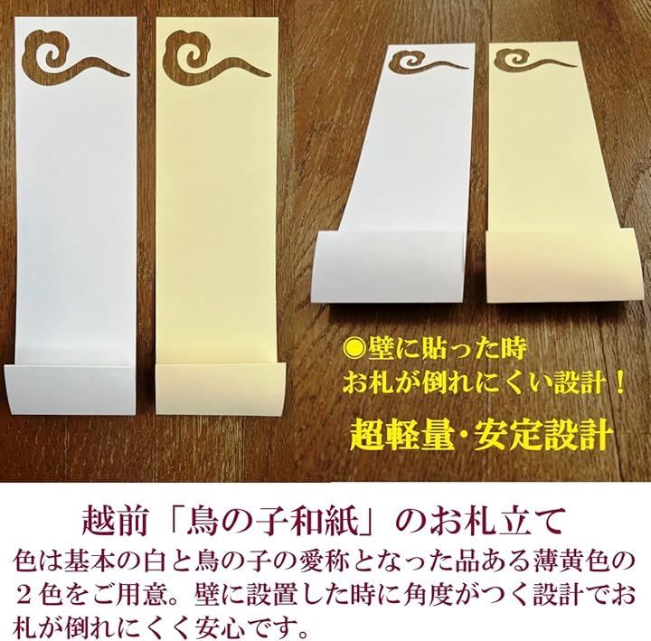 「スペック・お札立て」 材質:越前和紙「鳥の子紙」 サイズ:約)縦29.5cmx横10cm 「*届いてすぐに簡単設置できます。