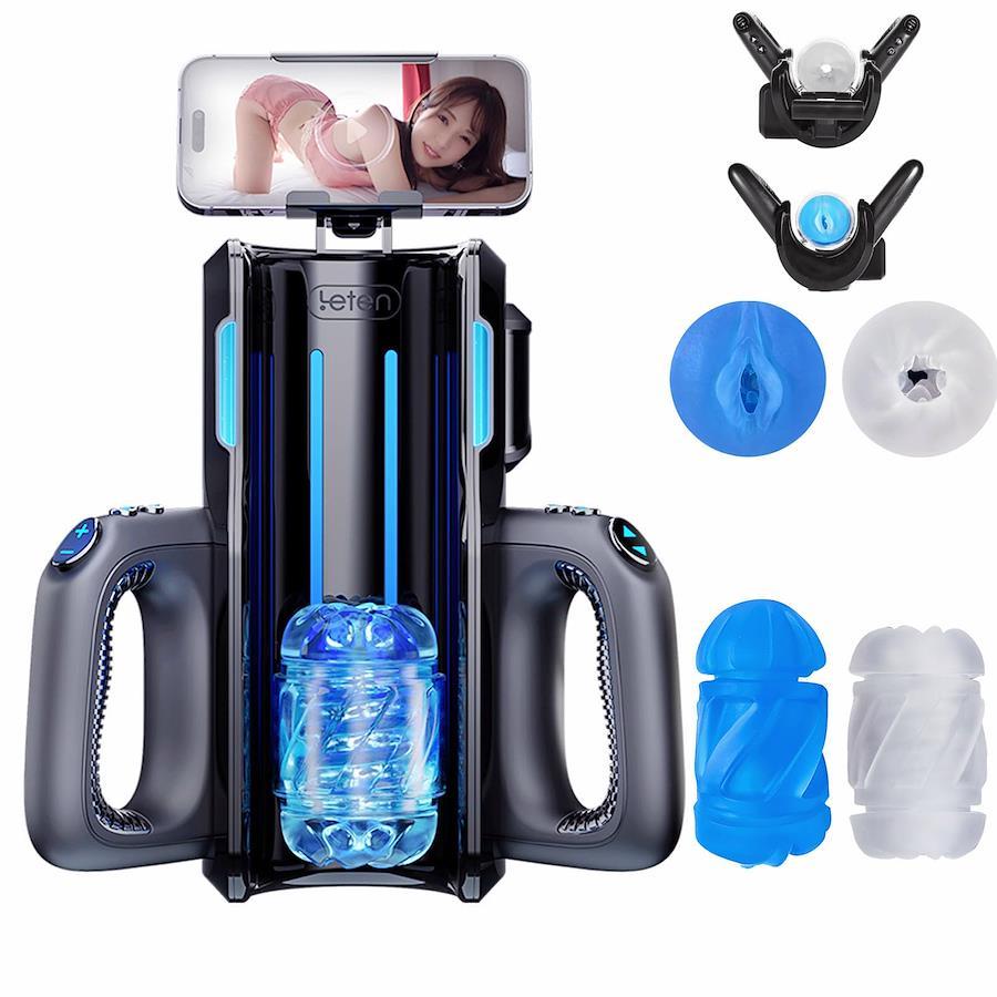 特徴- 10種類のモードと700ストローク/分: 電動オナホールとしての高度な機能により、10種類のストロークモードが選択可能で、1分あたり最大700回の動きが体験できます。ユーザーの好みに合わせて調節でき、様々な刺激を提供します。- 調整可能なストローク距離 (2cm - 12cm): 長さは約0.8インチから4.7インチまで自由に調節可能。深い刺激を楽しみたい場合や軽い刺激を好む場合など、ニーズに応じた調整が可能です。- 精密なポイント刺激: 特定の位置に集中して刺激を与えることが可能。希望する部位を重点的に刺激することで、満足度を高めることができます。- デュアルハンドルデザイン: 両手でしっかりと持ちやすいデザインで、さまざまな姿勢や角度での使用が可能です。持ち替えがしやすく、自在な操作が可能です。- 2種類のシリコンスリーブ: シングルオープンとオープンエンドのスリーブを付属し、異なる使用感を体験できます。柔らかい素材でできており、リアルな感触が楽しめます。- 音声機能: 使用時の臨場感を高めるため、音声機能も搭載。音声によるインタラクションで、さらなる没入感を体験できます。- 携帯電話ホルダー付き: 製品の上部にスマートフォンを取り付けることで、視覚的なエンターテイメントも一緒に楽しめます。