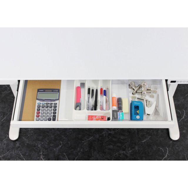 〈製品規格〉■サイズ本体サイズ:幅120×奥行60×高さ72〜121cm引出内寸(レール付):約幅66.5×奥行31×深さ4cm■本体重量:約38kg■素材・成分:材質:6mm厚強化ガラス、スチール■生産地:中国■組立:要組立品■カラー:ホワイト