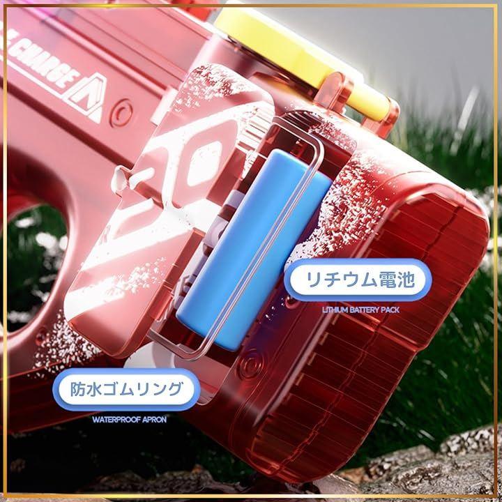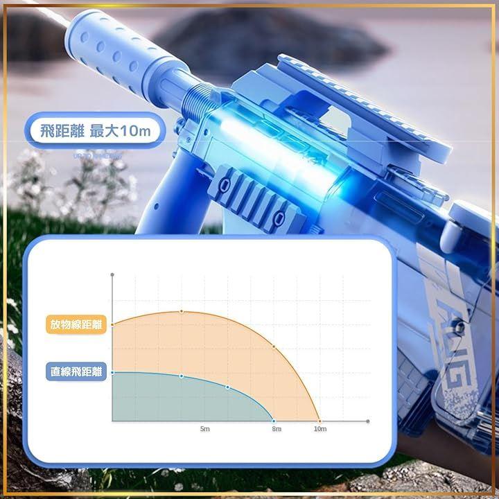 高性能モーター搭載で安定した飛距離と水圧 このウォーターガンには高性能の電動モーターを搭載しており、一定の水圧を安定的に保ちつつ連続噴射を実現します。