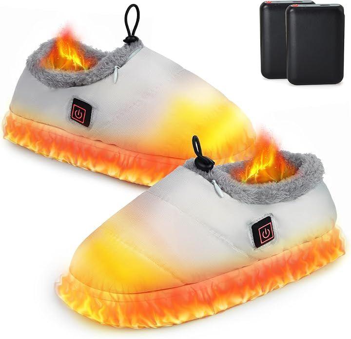 Cordless Electric Slippers, 10-Second Heating, Foot Warmer, Rechargeable, Walkable, Foot Heater, 2 Batteries, 6000mAh, Made in Japan, 3 Temperature Settings, 1.5m Extension Cord, Washable, Waterproof, Heated Slippers