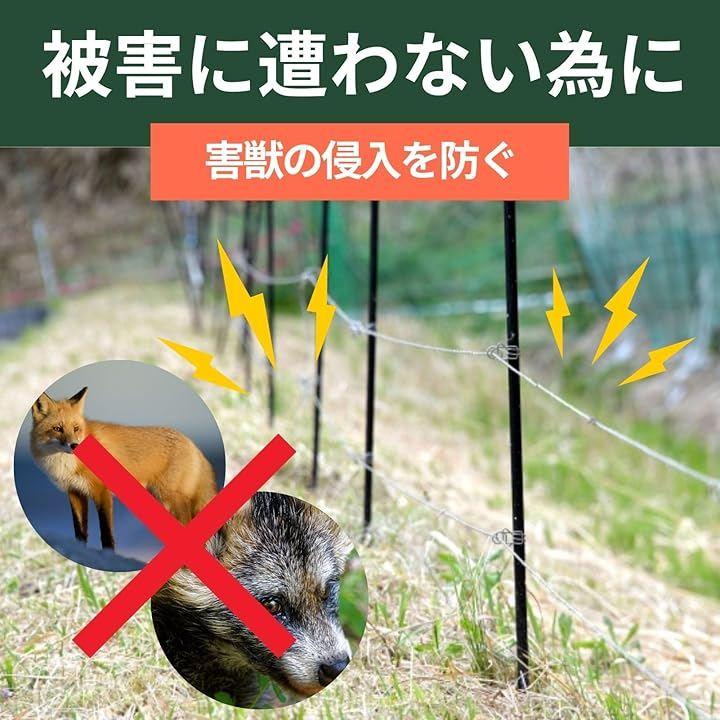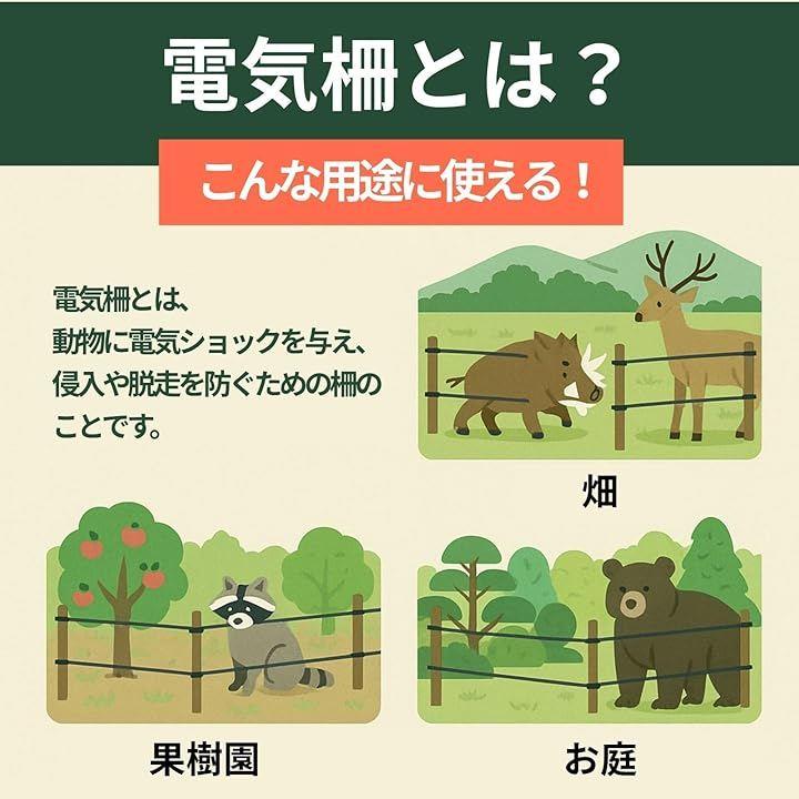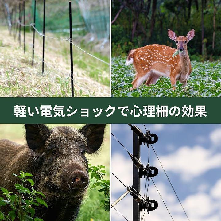 特にイノシシ・シカ・アライグマなどの中型獣への対策として効果的で、電圧ロスの少なさから長距離囲いに向いています。