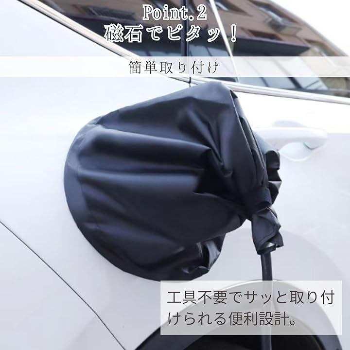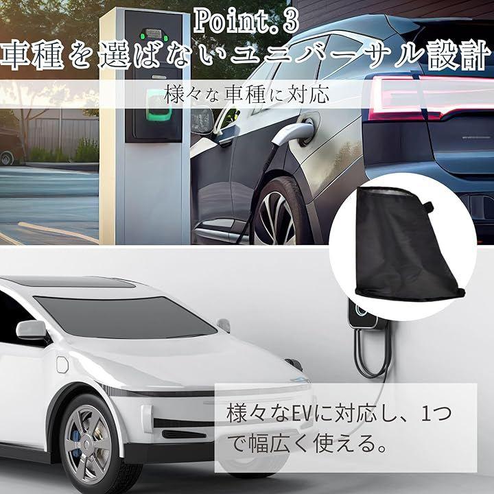 「優れた防水・防塵性」 頑丈なオックスフォード生地210Dを使用しており、雨や雪、砂ぼこりからEV車の充電ポートを守ります。