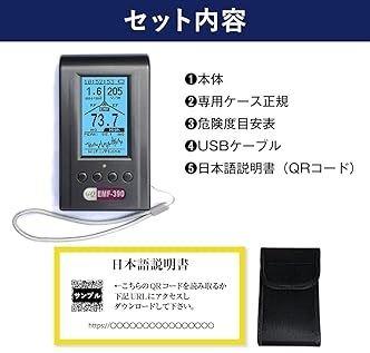 機能ガイド: 可聴アラーム:ビープ/サイレン 視覚警報:緑、赤のLED ディスプレイ:LCDドットマトリクス、バックライト付き ThreeAxis EMF:はい RF放射:最大10 GHz RFスペクトラムパワーアナライザー:2.40から2.5GHz、240から1040Mhz、2.30から23.00MHz、64から108MHz、520から1710KHz、150から531KHz データのロギング/保存:はい EMF(電磁界): 3軸(X、Y、Z)最大400Khz 範囲:0.0~500mG EF(電界): 範囲:0V / mから1000V / m RFフィールド(無線周波数フィールド): 周波数:最大10 GHz RFスペクトルパワーアナライザ: 周波数帯域1:150KHzから531KHz 周波数帯域2:520Khzから1710KHz 周波数帯域3:64MHzから108MHz 周波数帯域4:2.3MHzから23.00MHz 周波数帯域5:240MHz~1040MHz 周波数帯域6:2.4 GHz~2.5 GHz 仕様: 名前:G-Q EMF Meter 動作温度:5~40℃ 動作湿度:80%RH未満 動作電圧:3.6-3.7V 消費電力:25mW~125mW(バックライトに依存) によって供給:1 x 3.7V、1500mAhリチウムイオンバッテリー/ USB電源(両方が含まれています) 商品サイズ:135 x 78 x 25mm パッケージサイズ:200 x 100 x 50mm パッケージ重量:400g 包装内容明細書: 1 x G-Q EMFメーター 1 x USBケーブル 1 xガイドライン *日本語説明書はPDFにて対応致します。