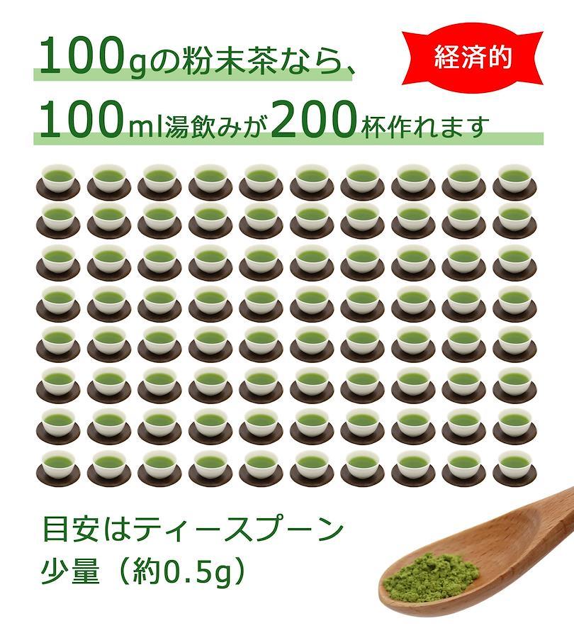 静岡県産一番茶使用。一番おいしいと言われる煎茶を微粉末にしました。まろやかで奥深い緑茶の味わいをお楽しみください。粉末茶はお茶の栄養成分をまるごと体の中に取り入れるため品質に注意する必要があります。無農薬・無化学肥料栽培の粉末茶なら安心してお飲み頂けます。100mlの湯飲みに対し、ティースプーン1/4(0.5g)が平均的ですが、お好みによって濃さを調整してください。500mlのペットボトルでしたら、ティースプーン1杯(2.5g)が平均的です。急須や茶こしがなくても美味しいお茶を楽しめますので、後片付けや食器洗いも楽です。デザートにかけたり、お菓子・パン作りにも使いやすい微粉末の緑茶です。原材料:緑茶(静岡県産)/内容量:100g【免責事項】メーカーによる商品リニューアルに伴いパッケージ(内容量も含む)変更が行われた場合、新パッケージでお届け致します事ご了承願います。