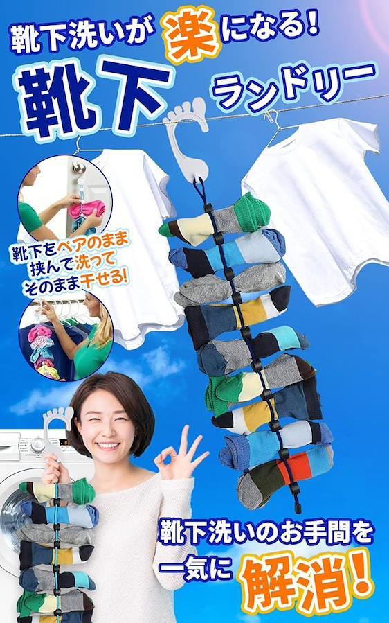 「靴下洗いのお手間を一気に軽減。」靴下ランドリー 靴下をペアのまま挟んで洗ってそのまま干せる。