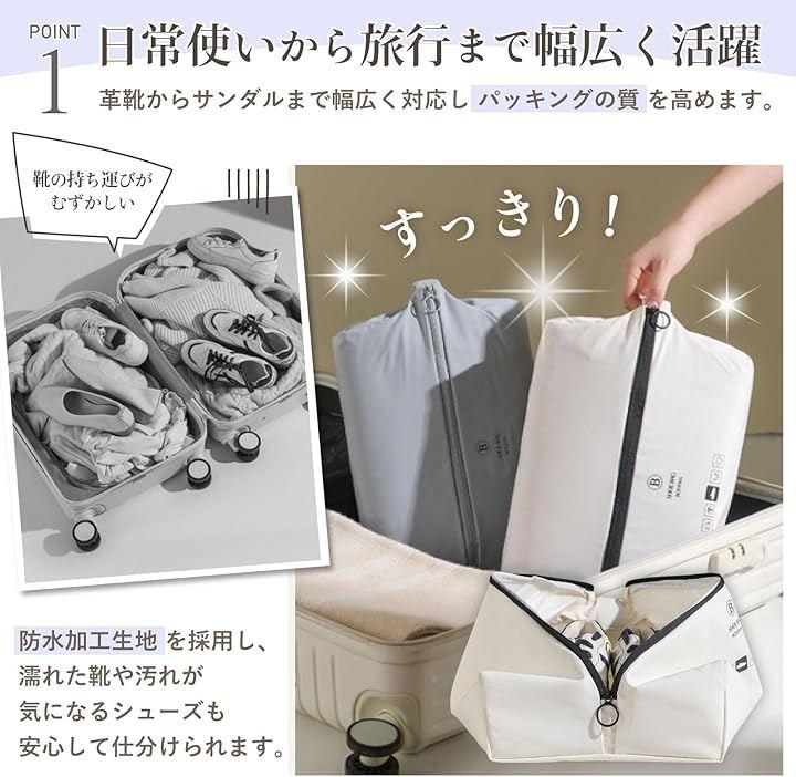 ランニングシューズや革靴、サンダルまで幅広く収納でき、スーツケースやバッグの中をすっきり整えます。