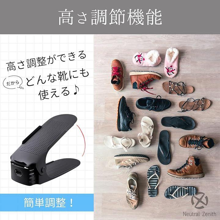 「高さ調節機能」靴のサイズや形状に合わせて高さを調節できるため、子供サイズから大人サイズまでさまざまな靴を効率よく収納できます。