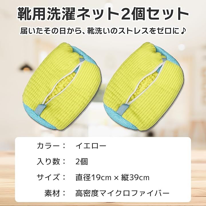 2個セットの円筒型シューズ洗濯ネットは、スニーカー洗濯・上履き洗濯・運動靴洗浄など幅広い用途に対応。