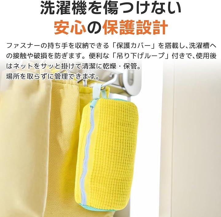 イエローカラーで洗濯物の中でも見つけやすく、取り出し忘れを防ぎます。
