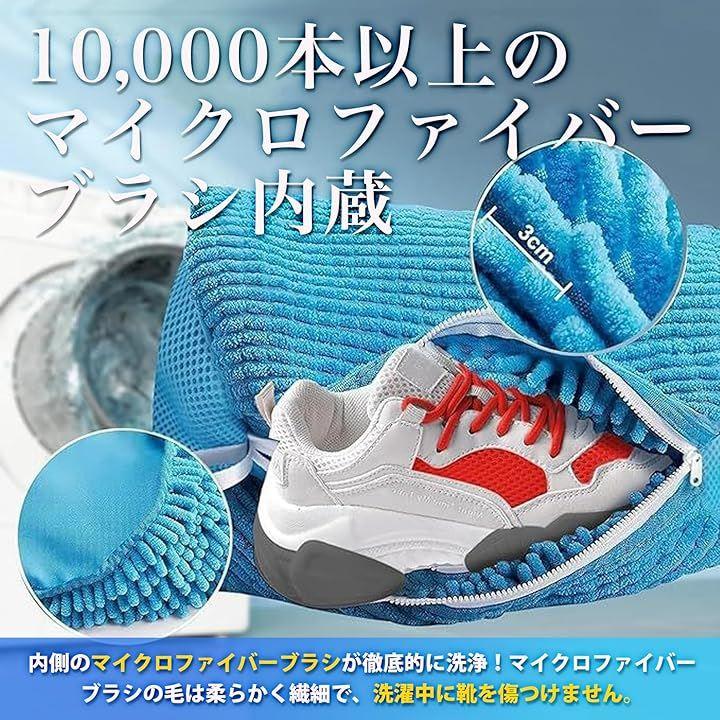 使い方簡単。ネットに靴を入れたらジッパーを閉めて洗濯機へポン。ジッパーはロック付きで洗濯中に靴が飛び出るのを防止。10000本以上の柔らかマイクロファイバーは靴を傷つける心配も不要。