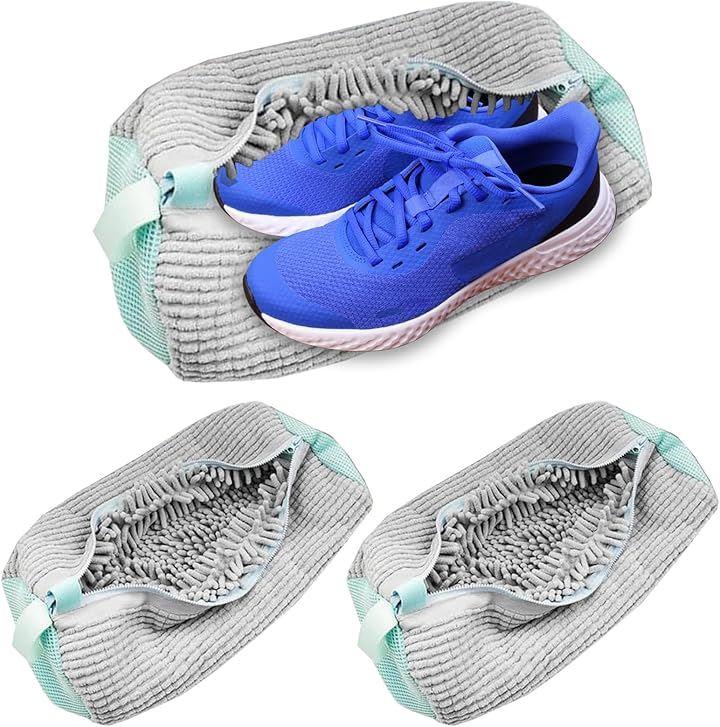 シューズ用洗濯ネット(3枚セット):長39x幅19cm、色:グレーx3、ブルーx3、ホワイトx3、ミックス(グレー、ブルー、ホワイト各1)マイクロファイバー、*モニターの環境により、色の見え方に若干差が生じる場合がございます。