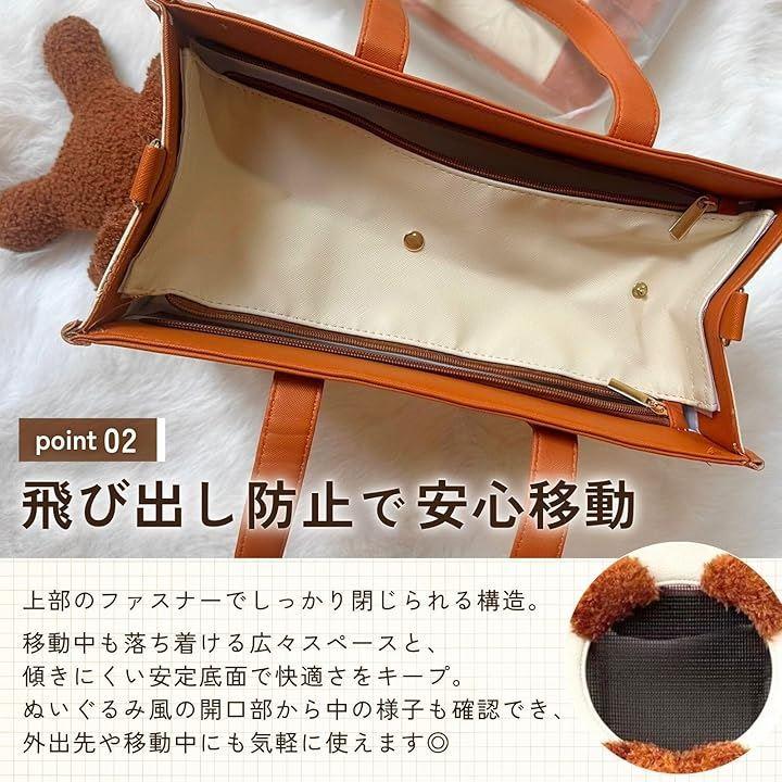 仕様1:ぬいぐるみ風デザインで注目度抜群:ぬいぐるみを模したユニークな外観が目を引くペットキャリーです。