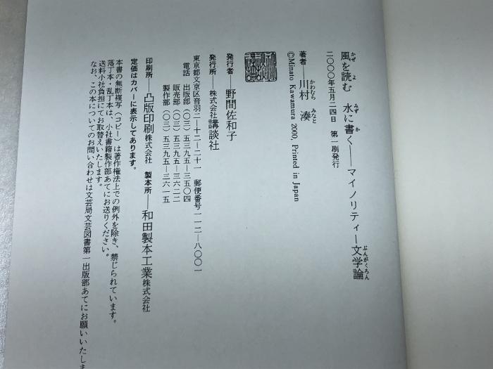 商品名:風を読む水に書く: マイノリティー文学論 講談社 川村 湊