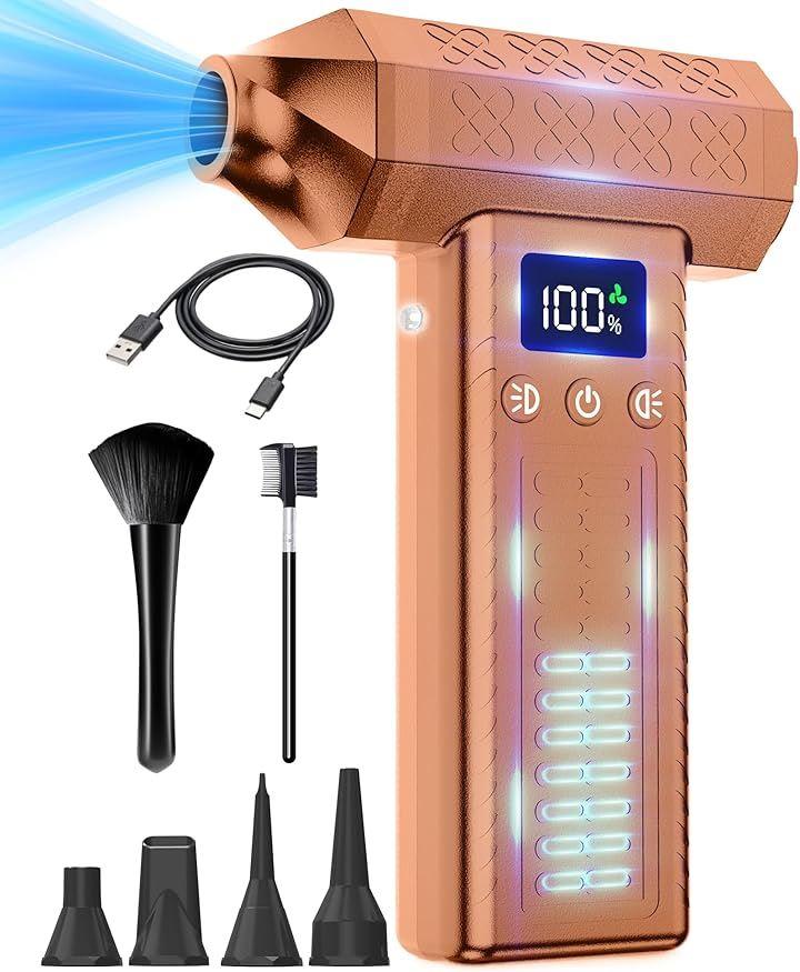 「100%真鍮超強力ブラシレスモーター&8000mAh大容量バッテリー&急速充電可能」アップグレードされた超強力モーターを採用、コンピュータやその他のデバイスの隅々からほこりを吹き飛ばすことができます。