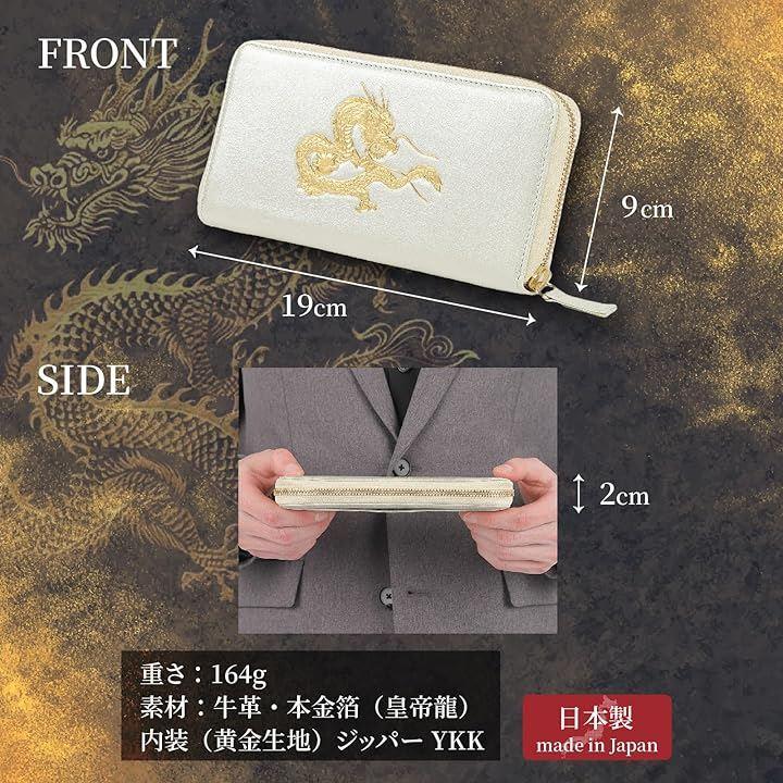 「財布の特徴」皇帝龍の力: 強力な金財運を引き寄せる紋章を本金箔刻印 高品質な素材:厳選された上質な牛革を使用 ( 本革 財布 )信頼の日本製:熟練革職人による総ハンドメイド品 熟慮の収納設計:カードやお金もスリムに収納で金運好転 高貴なカラー:金色の中でも高貴なシャンパンゴールド特注革で謹製した新作の 金運財布 。