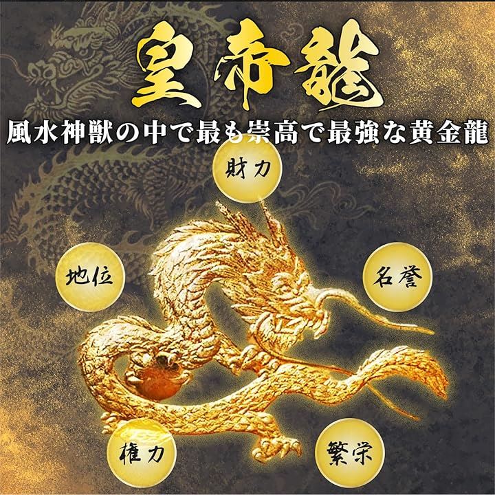 風水において龍は神獣とされ、特に黄金の皇帝龍は富と権力、そして強力な金運上昇の財神です。