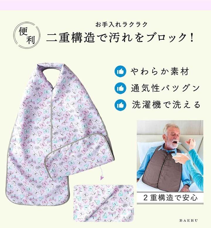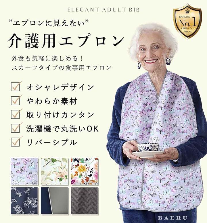 軽くて、洗濯出来て、カバンにさっと入りやすくて、とにかくおしゃれ。 従来の介護用エプロンに抵抗のある方にもスムーズに受け入れてくれます。