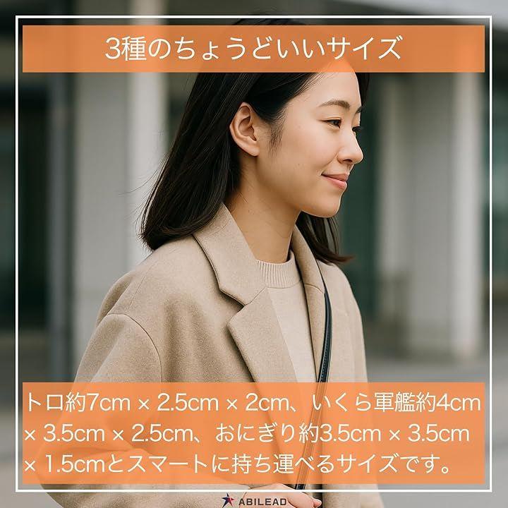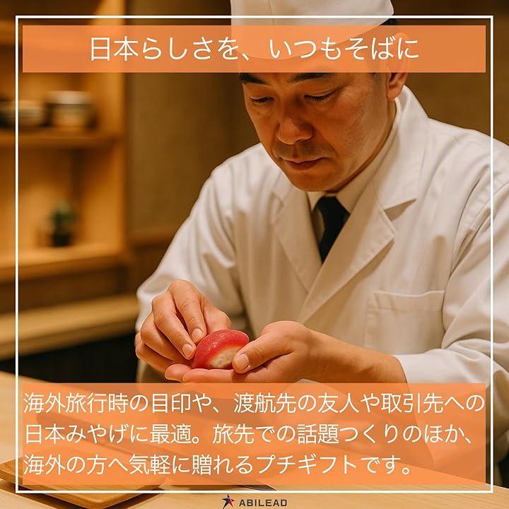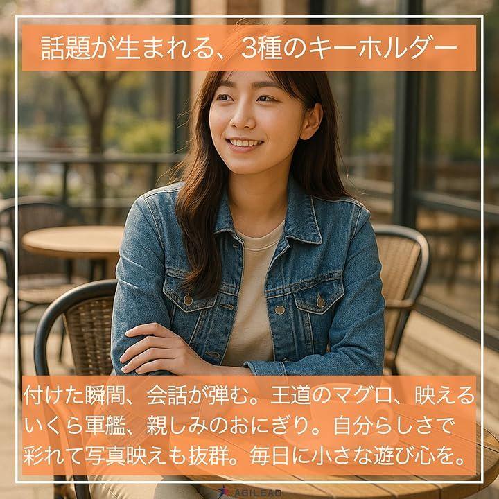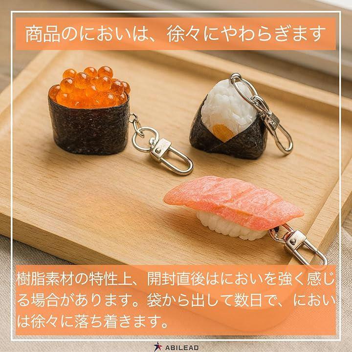ABILEADの食品サンプルシリーズは、日本らしい寿司とおにぎりを手のひらサイズで楽しめるミニチュアキーホルダーです。