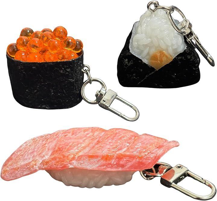 Food Sample Sushi Onigiri Keychain Set of 3 - Fatty Toro and Salmon Roe Gunkan - Low-Odor PVC, Japanese Souvenir, Gift, Perfect for Commuting, School, Bags, and Keys