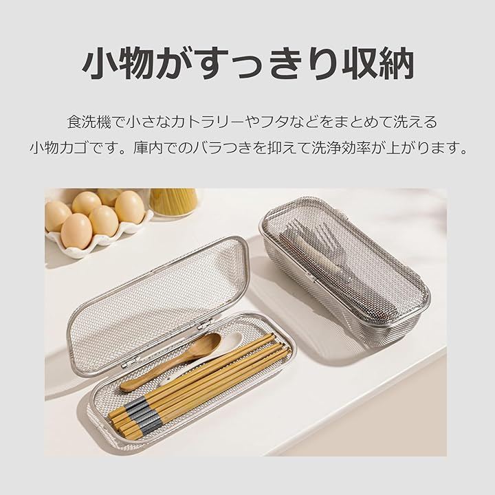 「小物がすっきり収納」 食洗機で小さなカトラリーやフタなどをまとめて洗える小物カゴです。