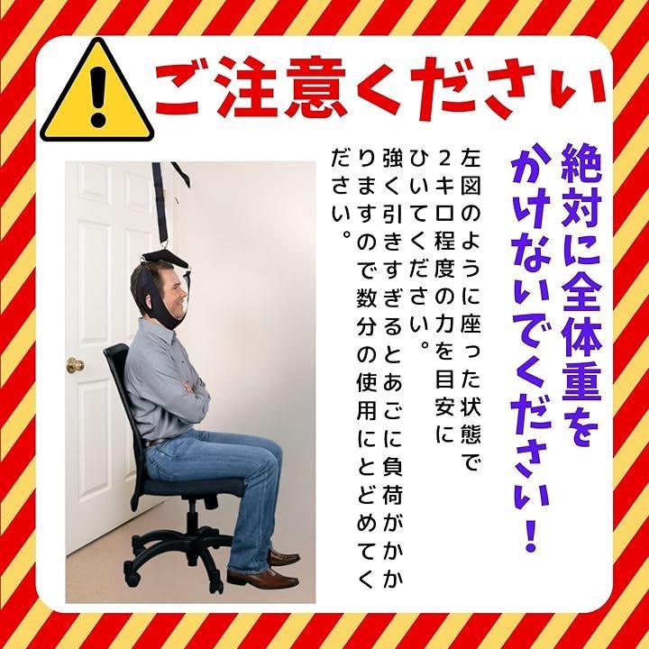 壁に取り付けた紐に頭部をセットして、ゆっくりと重力を利用しながら首をストレッチ。