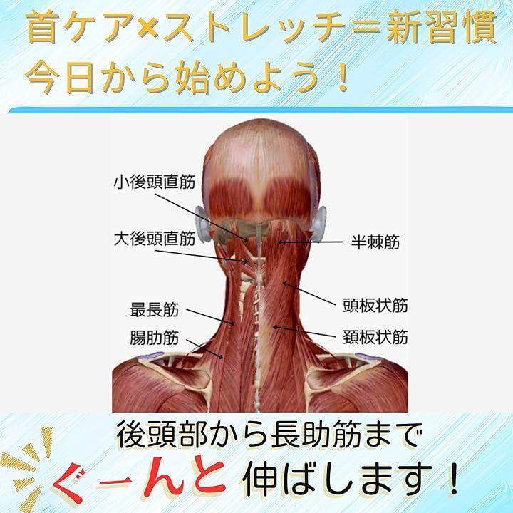 首や肩の筋肉をやさしく引っ張り、コリや疲労を和らげるサポートアイテム。