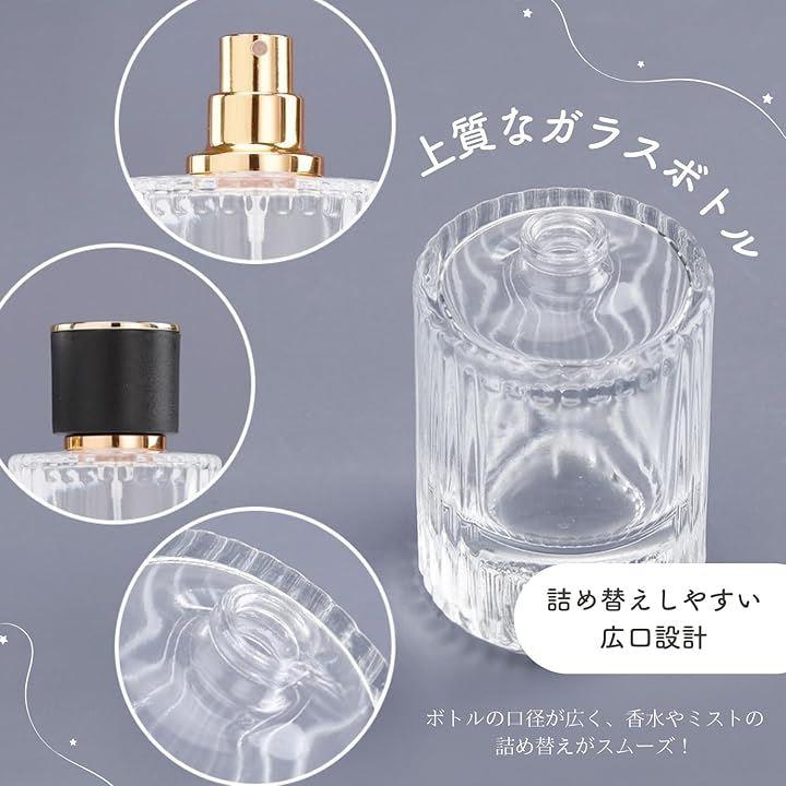 容量:30mL / 50mL 材質:ガラス カラー:ブラック / ホワイト 特徴:携帯便利 高密閉設計 漏れ防止 透明ボトル 耐久性あり 用途:香水 化粧水 ヘアスプレー アルコール対応