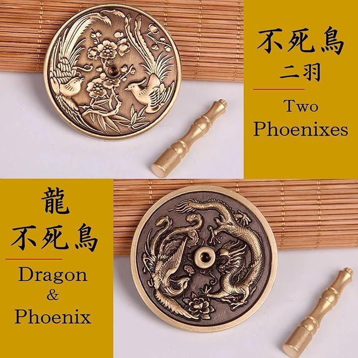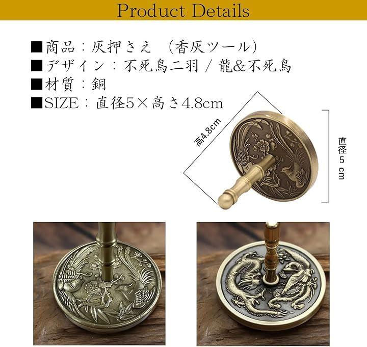 商品詳細:灰押さえ(香灰ツール)「デザイン」 不死鳥二羽 / 龍&不死鳥 「材質」 銅 「SIZE」 直径5cmx高さ4.8cm