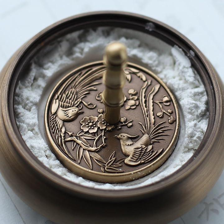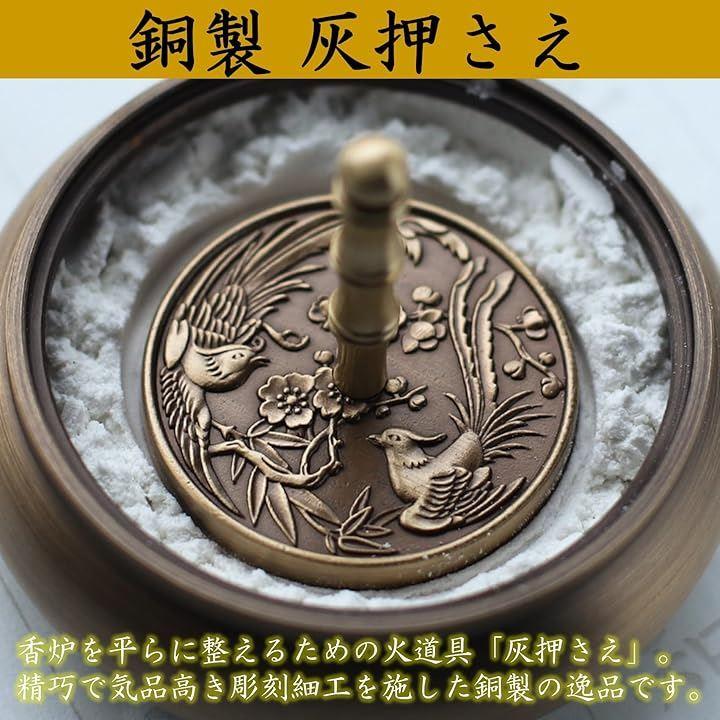 銅製の灰押さえに彫られた不死鳥は、燃え上がる炎から蘇るとされ、正に火を使った香の火道具に相応しい聖獣です。